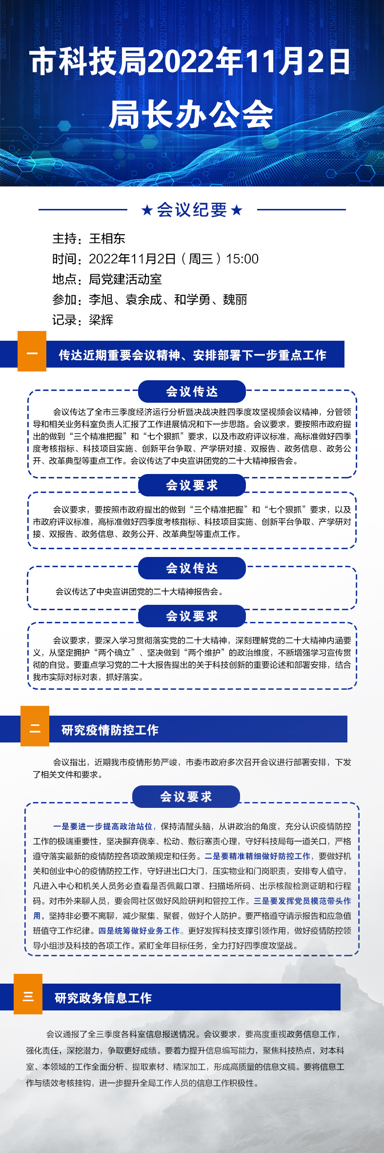 市科技局2022年11月2日局长办公会图文解读